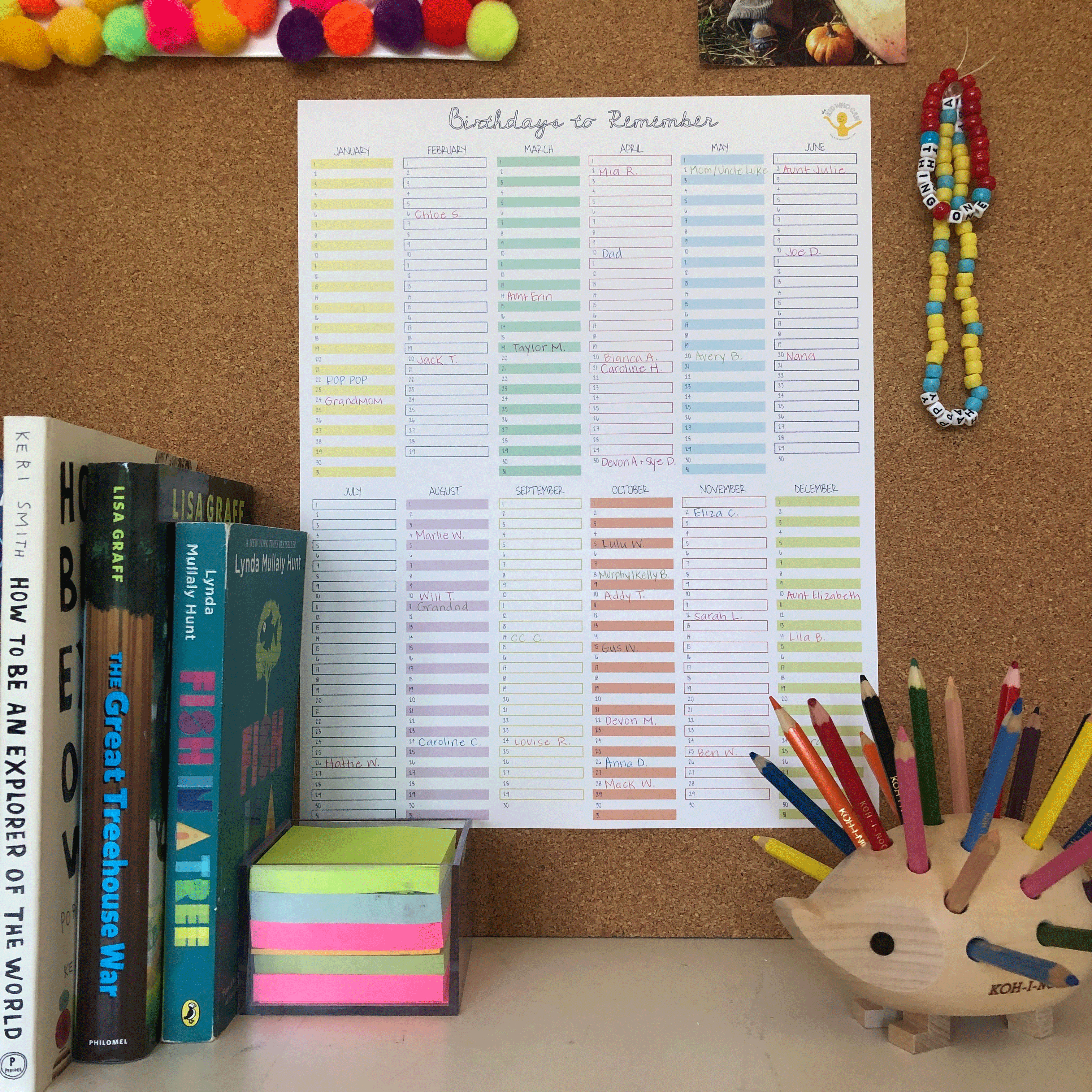 We all enjoy celebrating a special day! Giving kids a poster to keep track of their friends' birthdays will help develop thoughtfulness, awareness of others, and it's just fun! Made to be used year after year.